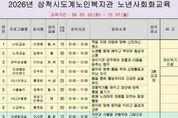 [참좋은뉴스= 기자] 삼척시도계노인복지관은 2026년도 노년사회화교육 프로그램 개강을 앞두고 수강생 모집을 시작했다. 1차 접수는 2월 19일부터 2월 23일까지 진행하며, 정원이 미달된 강좌에 대해서는 2월 24일부터 2월 25일까지 추가 접수를 실시한다. 이번 프로그램은 평생교육, 취미·여가, 건강생활 분야 등 총 24개 과목으로 운영할 예정이다. 참여를 희망하는 어르신은 복지관을 직접 방문하여 신청하면 된다. 이번 교육은 어르신의 노년기 삶의 질을 높이고 건강한 생활을 지원하기 위한 사업이다. 아울러 어르신의 역량을 강화하여 품격 있는 노후를 위한 사회적 기반을 마련하고 확대하는 데 목적이 있다. [뉴스출처 : 강원도 삼척시]