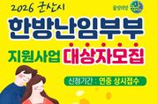 [참좋은뉴스= 기자] 군산시보건소는 난임으로 어려움을 겪고 있는 부부의 경제적 부담을 완화하고 건강한 임신과 출산을 지원하기 위해 ‘한방 난임부부 지원사업’ 참여자를 모집한다. 본 사업은 1인당 180만 원 상당의 한약·침·뜸 등 한방치료를 제공하여 난임 극복을 돕는 사업이다. 지원대상은 신청일 기준 군산시에 주민등록을 둔 난임부부로, 소득과 관계없이 신청할 수 있으며, 모집 인원은 총 27명으로 연중 선착순으로 충원 시까지 접수한다. 신청은 군산시보건소 방문 접수로 진행되며, 구비서류는 ▲주민등록등본 ▲정부지정 난임시술 의료기관의 난임진단서 또는 난임을 확인할 수 있는 산부인과 일반 진단서 및 관련 검사 결과지(자궁 및 난관검사, 난소기능검사, 정액검사) ▲신분증이다. 선정된 대상자는 4개월간 한방 난임 치료와 2개월간 추적조사(총 6개월)에 참여해야 하며, 해당 기간에는 한방 난임 치료 외 다른 난임 시술을 병행할 경우 지원이 제한된다. 기타 자세한 사항은 군산시보건소 가족건강계로 문의하면 된다. [뉴스출처 : 전라북도 군산시]