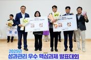[참좋은뉴스= 기자] 서귀포시는 지난 18일, 서귀포시청 제1청사 별관 2층 문화강좌실에서 '2025년 성과관리 우수 핵심과제 발표대회'를 개최했다. 성과관리 우수 핵심과제(이하‘ 우수 핵심과제’라 한다)는 시정 비전 실현을 위해 부서의 성과관리 핵심과제 지표와 연계되어 연중 추진해왔다. 이번 발표대회에는 우수 핵심과제로 선정된 10개의 과제 중 상위 5개 과제가 진출했으며, 발표심사를 통해 최종 순위가 결정됐다. 각 실·국·소(읍면동 포함)에서 자체적으로 선정한 과제(총 20개) 중 1차 서면 심사(시민정책만족도 평가단 등)를 거쳐 우수 핵심과제 10개가 선정됐다. 이 중 상위 5개 과제는 내·외부 심사를 병행한 발표대회에서 우수 핵심과제의 기여도, 난이도, 도전성, 완성도를 기준으로 최종 순위가 결정됐다. 20개의 핵심과제 중 1·2차 심사를 거쳐 최종 금상으로 ‘『새연쇼+새섬공원』야간 관광 콘텐츠 확대(관광진흥과)’와‘UP!그레이드 자원순환 선도 도시로 재도약(생활환경과)’이 선정됐다. 서귀포시는 이번 발표대회를 통해 부서 간 우수사례 공유와 성과관리 역량 강화에 큰 도움이 될