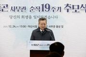 [참좋은뉴스= 기자] 아산시는 24일, 아산시청 앞 故 최종곤 사무관 흉상 앞에서 ‘故 최종곤 사무관 순직 19주기 추모식’을 거행했다. 이번 추모식은 2006년 12월, 공무 수행 중 불의의 사고로 순직한 故 최종곤 사무관의 숭고한 희생과 헌신을 기리고, 시민의 안전을 위해 헌신한 공직자의 사명과 책임을 되새기기 위해 마련됐다. 이날 행사에는 유가족을 비롯해 김범수 아산시 부시장, 맹의석 아산시의회 부의장, 동료 공직자 등 다수가 참석해 고인을 추모했다. 김범수 부시장은 추모사에서 “故 최종곤 사무관은 시민의 안전을 자신의 책무로 여기며 현장에서 묵묵히 소임을 다한 참된 공직자였다”며 “고인의 희생과 헌신은 오늘의 아산시 공직자들에게도 큰 울림과 책임으로 남아 있다.”고 말했다. 이어 “아산시는 고인의 뜻을 잊지 않고, 시민의 안전을 최우선으로 하는 행정을 이어 가겠다”고 밝혔다. 故 최종곤 사무관은 2006년 12월 24일, 송악면 국도 39호선에서 조류인플루엔자 확산 방지 업무를 수행하던 중 과속 차량에 의해 사고를 당해 순직했다. 고인은 생전 성실한 근무와 투철한 책임감으로 동료와 시민들로
