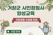 [참좋은뉴스= 기자] 거창군은 정원 전문 지식을 갖춘 시민정원사를 양성하고, 체계적인 정원관리 봉사활동을 활성화해 지역 정원문화 확산과 관련 산업 육성에 도모하기 위해 ‘시민정원사 양성교육 기초과정’ 수강생을 모집한다. 이번 기초과정은 정원에 관심 있는 거창군민이며 누구나 신청 가능하며, 모집인원은 20명 내외이다. 접수는 오는 25일부터 27일까지며, 거창창포원 운영 담당 방문 또는 우편으로 신청할 수 있다. 이번 교육은 3월 20일부터 7월 10일까지 매주 금요일 12시부터 18시까지 거창창포원 다목적실에서 진행될 예정이다. 교육과정은 이론 39시간, 실습 49시간으로 구성되며, 정원식물 이해, 정원식물 관리, 정원조성 방법 등 실무 중심 강의와 현장실습도 포함된다. 교육을 수료한 시민정원사는 향후 거창군 내 다양한 정원봉사 활동과 심화교육 참여 기회도 제공받게 된다. 신동일 환경과장은 “시민정원사 양성교육을 통해 주민들의 정원 전문성을 높이고 지역 정원문화 확산에 기여하길 기대한다”며 “정원에 관심 있는 군민들의 많은 참여를 바란다”고 말했다. [뉴스출처 : 경상남도 거창군]