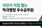 [참좋은뉴스= 기자] 경기도교육청이 공공의 이익을 높인 적극행정 우수공무원 선정을 위해 2025년도 하반기 대국민 심사를 실시한다. 도교육청은 창의적이고 능동적인 행정을 펼친 각 기관의 추천 사례를 접수해 1차 예선심사에서 우수사례 15건을 선정했다. 이를 대상으로 1월 26일부터 30일까지 ‘소통24’누리집에서 국민이 참여하는 온라인 투표 방식의 대국민 심사를 진행한다. 참여자는 1인당 3건의 우수사례에 투표할 수 있다. 본선 진출자는 예선심사 점수 60%와 국민투표 결과 40%를 합산해 최종 결정된다. 선발된 공무원에게는 교육감 표창과 포상금, 특별승급의 인사상 가점부여 등 다양한 특전을 제공할 계획이다. 이번 선발은 단순한 성과 평가를 넘어 적극행정의 모범사례를 널리 알리고, 공직사회 전반에 적극행정 문화를 확산시키는 의미가 있다. 특히 국민이 직접 우수공무원을 선정함으로써 정책 수요자의 관점이 반영된다는 점에서 공정하고 투명한 심사 절차가 마련될 것으로 기대된다. 도교육청은 앞으로도 국민이 체감하는 변화를 만들어낸 공무원의 노력을 널리 알리고, 적극행정을 일상적 공