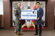 [참좋은뉴스= 기자] 충청북도교육청이 29일, 연말연시를 맞아 육군 제37보병사단에 위문금을 전달했다. 이날 윤건영 교육감은 제37보병사단 방문하여 “국방의 의무를 다하는 군장병들의 노고에 감사하고, 조금이라도 위로가 됐으면 좋겠다.”라며, “충북 교육가족은 국토방위와 국민 안전을 위해 묵묵히 헌신하는 국군장병을 항상 응원하며, 감사의 마음을 잊지 않겠다.”고 말했다. 한편, 충북교육청은 지난 24일 공군사관학교를 방문하여 장병들을 격려하고 위문금을 전달한 바 있으며, 지난 추석에도 육군종합행정학교를 비롯한 지역 내 부대를 위문 방문하는 등 국군장병들에 대한 격려를 매년 꾸준히 이어가고 있다. [뉴스출처 : 충청북도교육청]