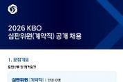 [참좋은뉴스= 기자] KBO는 퓨처스리그에서 활동할 KBO 심판위원을 공개 채용한다. 이번 채용은 KBO 야구심판 양성과정 수료자(2026년 야구심판 양성과정 수료 예정자 포함) 또는 대한야구소프트볼협회(KBSA) 및 산하단체, 독립리그 소속 심판으로 1년 이상의 심판 활동 경력(단체장 직인 필수) 보유자에 한해서 지원이 가능하다. 최종 합격자는 2026 KBO 공식 심판위원으로 활동하게 되며, 근무 종료 후 평가 결과에 따라 정규직 전환이 검토된다. 채용과 관련된 세부 정보 및 우대 사항은 채용 공고문을 통해 확인 가능하다. 접수 기간은 오늘(2일)부터 23일(월)까지며, KBO 채용 홈페이지(kbo.saramin.co.kr)에서 지원 가능하다. [뉴스출처 : KBO]