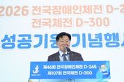 [참좋은뉴스= 기자] 12년 만의 전국체전, 제주 최초의 전국장애인체전을 300일 앞두고 제주월드컵경기장 광장에 카운트다운 홍보탑이 불을 밝혔다. 제주특별자치도는 20일 이곳에서 ‘D-day’ 기념행사를 열고 본격적인 대회 준비 시동을 걸었다. 범도민 지원위원회(591명) 출범 선언과 서포터즈 다짐이 이어지며, 도민과 함께 만드는 체전이 시작됐음을 공식화했다. 이날 행사에는 오영훈 제주도지사를 비롯해 이진숙 대한체육회 부회장, 이희룡 대한장애인체육회 사무총장, 이상봉 도의회 의장, 김광수 도교육감 등 주요 인사와 범도민 지원위원회, 서포터즈 등 200여 명이 참석했다. 행사는 카운트다운 홍보탑 제막식으로 시작됐다. 참석자들이 함께 카운트다운을 외치는 가운데 주요 내빈들이 홍보탑에 불을 밝히자‘전국장애인체전 D-265일, 전국체전 D-300일’이 점등됐다. 이 홍보탑은 앞으로 도내 곳곳에서 두 대회까지 남은 날을 알리며 체전 분위기를 확산시킨다. 오영훈 지사는 인사말씀을 통해 “제주가 첫 전국장애인체전을 전국체전보다 먼저 개최하는 것은 최근 선언한 평화·인권 헌장의 가치를 실천하는 것