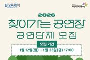 [참좋은뉴스= 기자] (재)화성시문화관광재단은 1월 12일부터 1월 23일까지 ‘2026 찾아가는공연장’ 참여 공연단체를 모집한다고 밝혔다. ‘찾아가는 공연장’은 화성시의 곳곳에서 다양한 장르의 공연을 제공함으로써 시민들의 일상적인 문화예술 관람을 돕기 위한 사업으로, 2009년부터 시작된 화성시문화관광재단의 대표 문화사업 중 하나다. 지난 2025년도에는 공개 모집을 통해 40개의 공연단체를 선정했으며, 문화취약계층에 방문공연, 공원 광장 거리공연 등을 통해 다양한 장르의 공연으로 화성시민과 함께했다. ‘2026 찾아가는 공연장’은 약 140회차의 공연을 목표로 운영된다. 이번 공연단체 모집은 3년 이상의 공연활동 경력이 있는 공연단체라면 지역, 장르에 상관없이 신청가능하다. 접수는 1월 12일부터 23일까지 온라인으로만 가능하며, 1차 서류‧영상 심사, 2월 9일~10일 2차 실연‧면담 심사를 거쳐 2월 12일에 최종 선정단체 총 35팀을 발표할 예정이다. 화성시문화관광재단 안필연 대표이사는 “지역과 장르의 제한을 두지 않는 만큼, 화성시 곳곳에서 재능을 뽐내줄 다양한 예술 공연단체들의 많은 관심과 지원을