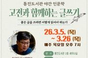 [참좋은뉴스= 기자] 김포시 통진도서관은 고전 중심의 독서법과 글쓰기를 알려주는 야간 인문학 프로그램 ‘고전과 함께하는 글쓰기’를 오는 3월 5일부터 3월 26일까지 매주 목요일 오후 7시에 통진도서관 세미나실에서 운영한다고 밝혔다. '고전 한 책 깊이 읽기'의 저자 이권우는 ‘고전과 함께하는 글쓰기’를 통해 맹자의 철학과 중용을 깊이 있게 다루며, 책을 읽으면서 생각을 확장하는 독서법과 단락 중심의 글을 쓰는 방법을 총 4회차에 걸쳐 진행한다. 회차별 주제는 ▲고전 속 맹자의 철학 ▲맹자가 알려주는 우리 시대의 관계성 ▲글쓰기가 쉬워지는 독서법 ▲글쓰기의 첫걸음이다. 참여를 원하는 경우 오는 2월 10일 오전 10시부터 통진도서관 누리집 또는 전화로 신청할 수 있으며, 고전과 글쓰기에 관심있는 성인 20명을 선착순으로 모집한다. [뉴스출처 : 경기도 김포시]