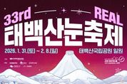 [참좋은뉴스= 기자] (재)태백시문화재단은 제33회 태백산 눈축제의 공식 포스터를 공개하고 본격적인 홍보에 나섰다고 밝혔다. 제33회 태백산 눈축제는 오는 2026년 1월 31일부터 2월 8일까지 태백산국립공원 일원에서 열릴 예정으로, 이번 축제는 ‘2026 RE⧗AL 태백산 눈축제’를 슬로건으로 시민과 관광객이 함께 참여하는 체류형 겨울축제로 운영된다. 공개된 공식 포스터는 ‘33rd REAL 태백산 눈축제’를 메인 타이틀로, 이번 축제의 주제인 ‘REAL’을 직관적으로 배치해 축제의 방향성과 정체성을 명확히 전달한다. ‘REAL’은 △항상 기억에 남는 축제(REMEMBER ALWAYS) △시민과 함께 소통하는 축제(REPLY ALWAYS) △휴식이 공존하는 축제(RELAX ALWAYS)를 의미한다. 포스터는 와인 컬러 톤을 바탕으로 한 겨울 산세와 조명 연출을 통해 눈축제 특유의 따뜻하고 안정적인 분위기를 표현했으며, 천제단과 태백시 마스코트 ‘태붐이’, 겨울 체험 장면 등을 배치해 태백만의 지역성과 가족 친화적 이미지를 함께 담아냈다. 문화재단은 축제의 인지도와 친근감을 높이기 위해 올해 처