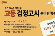 [참좋은뉴스= 기자] 태안군이 배움의 기회를 놓친 성인 학습자들의 고등학교 학력 취득 지원을 위해 ‘2026년 고등 검정고시 준비반’을 운영하기로 하고, 이를 이끌어갈 유능한 강사와 학습자를 함께 모집한다. 강사 모집은 이달 23일부터 30일까지 진행되며 국어, 영어, 수학 등 7개 과목 전문가 7명 내외를 선발한다. 중등학교 정교사 자격증 소지자를 우선선발하며, 군 평생교육팀에 방문하거나 이메일로 접수하면 된다. 학습자 모집 기간은 이달 16일부터 내달 11일까지다. 고등 학력 취득을 희망하는 만 18세 이상 군민이라면 누구나 신청할 수 있으며, 군 평생교육팀에 방문하거나 전화로 접수하면 된다. 수업은 2월 23일부터 매주 화·목·금요일 오후 1시 30분부터 진행된다. 군은 학습자들의 부담을 덜어주기 위해 강사료는 물론 교재와 문구류 등 학습에 필요한 비용 전액을 군비로 무료 지원할 방침이다. 군은 연 2회 시행되는 시험 일정에 맞춰 기초 학습부터 기출문제 풀이까지 체계적인 맞춤형 수업을 제공한다. 학습 수준에 따라 합격 가능성이 높은 과목을 우선 선택하게 하는 등 전략적인 시스템으로 학습 성취