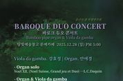 [참좋은뉴스= 기자] 담양군문화재단은 오는 28일 오후 5시 담빛예술창고 문예카페에서 『2025 담빛예술창고 송년특별연주회 ‘바로크 듀오 콘서트’』를 진행한다고 밝혔다. 이번 공연은 2015년부터 꾸준히 진행해 왔던 담빛예술창고 대나무 파이프 오르간 정기연주회의 일환으로, 한 해를 마무리하는 의미에서 바로크 시대의 대표적 악기인 비올라 다 감바와 듀오 콘서트 형식을 빌어 서정성과 장엄함의 조화로움을 선사할 예정이다. 국내 유일의 대나무 파이프 오르간 연주는 담빛예술창고 정기연주회 상임연주자 안애경의 연주와 곡해설이 함께 곁들여지며, 일상에서 쉽게 접하기 어려운 악기인 비올라 다 감바 연주는 국내외에서 활발히 활동하며 한국을 대표하고 있는 강효정 연주자가 맡았다. 재단 관계자는, “단순한 음악 감상을 넘어, 바로크 시대 악기의 예술적 가치와 담양이 지닌 문화적 특성을 함께 체감하며 한 해를 편안하고 따스하게 마무리할 수 있기를 바라는 마음을 담아 준비한 공연이다.”고 말하며, “담양의 경관인 관방천과 관방제림의 풍치를 가득 느낄 수 있는 문화재생공간 담빛예술창고 문예카페에 방문하여 2025년 한 해를 되새기는