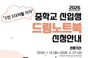 [참좋은뉴스= 기자] 제주특별자치도교육청은 12일부터 인공지능(AI) 대전환 시대를 맞아 도내 학생들의 디지털 학습 역량을 강화하기 위해 중학교 신입생을 대상으로 ‘2026학년도 드림노트북 지원(대여) 사업’ 신청을 받는다. 이번 사업은 단순한 기기 지원을 넘어 모든 학생에게 공평한 디지털 학습권을 보장하고 3월 1일 신학기 개학을 기점으로 초등학교 3학년부터 고등학교 1학년까지 '1인 1디지털 기기 보급 체제'가 갖춰 진다는데서 그 의미가 크다. 드림노트북 사업은 모든 학생에게 동일한 기기를 지원해 디지털 정보 격차를 해소하고 학습권을 보장하는 데 목적이 있으며 특히 중·고교 6년간의 연속적인 기기 활용을 통해 학생들이 학습 데이터를 축적하고 성장 과정을 스스로 기록하며 미래의 꿈을 키워나가는 ‘디지털 동반자’로 자리매김 할 것으로 기대되고 있다. 도교육청은 2023년 7000대의 드림노트북 보급을 시작했으며 2024년 6835대, 2025년 6988대를 지원하여 디지털 인프라를 구축해 왔으며 올해 중학교 신입생에게 6525대의 보급이 마무리되면 4년간 총 2만 7348대의 기기가 지원되게 된다.