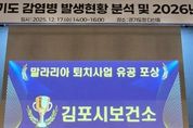 [참좋은뉴스= 기자] 김포시보건소는 경기도가 실시한 ‘2025년 말라리아 퇴치사업 유공 평가’에서 우수기관으로 선정되며 8년 연속 수상하는 성과를 이어갔다. 김포시는 최근 3년간 환자 발생 양상과 지역별 특성을 분석해 맞춤형 환자 관리 체계와 홍보전략을 구축하고, 이를 기반으로 ‘말라리아 집중관리사업(FOCI)’을 적극 추진했다. 이러한 현장 중심 대응 강화로 환자 수는 전년 대비 약 20% 감소하는 성과를 거두었다. 주요 성과로는 △말라리아 진단가능 의료기관 대폭 확대(337.0% 증가) △지역밀착형(마을회관, 산업체 등) 예방 교육 및 신속진단검사 시행 △주말, 야간을 활용한 고위험 다중이용시설(낚시터, 캠핑장, 산책로 등) 홍보 △방역지리정보시스템(GIS) 기반 지역·시기별 맞춤형 방제 추진 등이 있다. 김포시보건소 관계자는 “말라리아로부터 시민의 안전을 지키기 위해 근거 기반의 예방·관리 체계를 더욱 강화하고, 지역사회의 협력을 바탕으로 건강한 김포를 만들어가겠다”고 밝혔다. [뉴스출처 : 경기도 김포시]