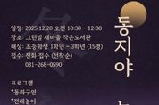[참좋은뉴스= 기자] 수원시 장안구 정자3동 그린빌새마을문고는 동지를 맞아 오는 20일 전통문화 등 다양한 프로그램을 체험할 수 있는 ‘동지야 놀자’ 행사를 개최한다고 밝혔다. 이번 행사는 오는 20일 오전 10시 30분부터 12시까지 도서관에서 진행되며, △동화구연 △작은음악회 △전래놀이 △팥죽나눔 등 다양한 프로그램이 마련됐다. 박혜경 그린빌새마을문고회장은 “이번 행사를 통해 우리 고유의 세시풍속을 자연스럽게 익히고 따뜻한 겨울 정을 느낄 수 있길 바란다”며 “앞으로도 지역 주민과 함께하는 작은도서관이 될 수 있도록 노력하겠다”고 말했다. [뉴스출처 : 경기도 수원시]